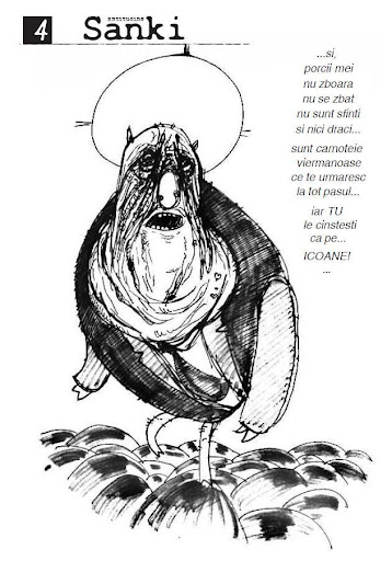 De aici, articolul devine usor off topic, dand cuviantul unui „cercetator”, Alexandru Ciubotariu, unui caricaturist, Ion Barbu, cu lucrari publicate in „Istoria Benzii Desenate” (!!), continuand cu Obama si Sarkozy, terminand cu „Persepolis” de Marjane Satrapi.
